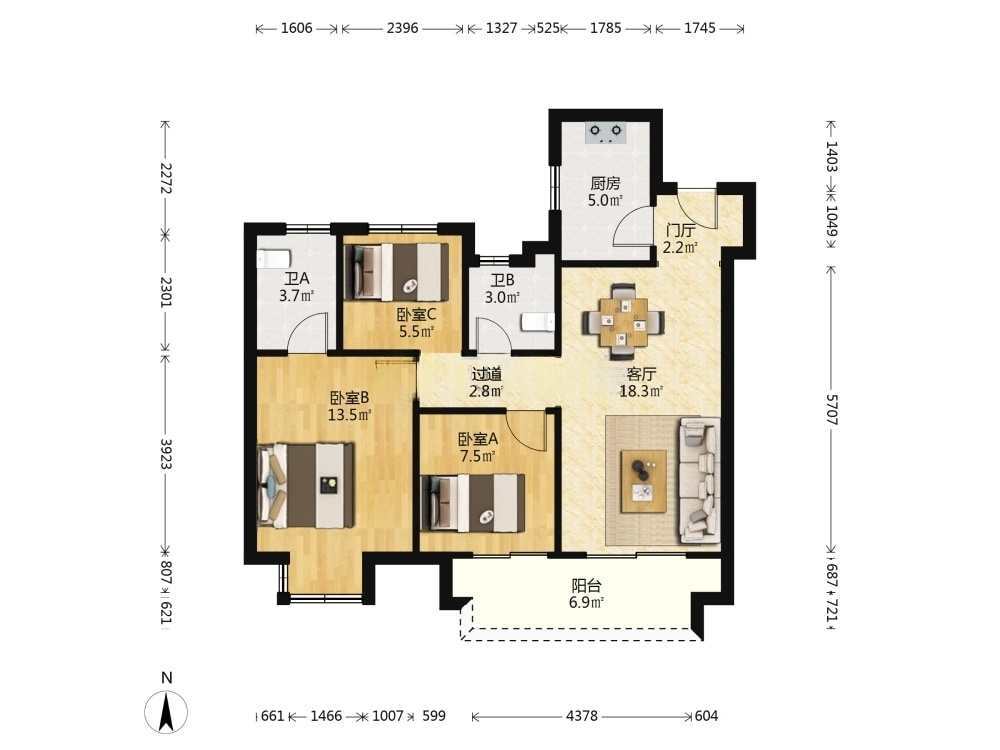 97㎡ / 3室1厅2卫