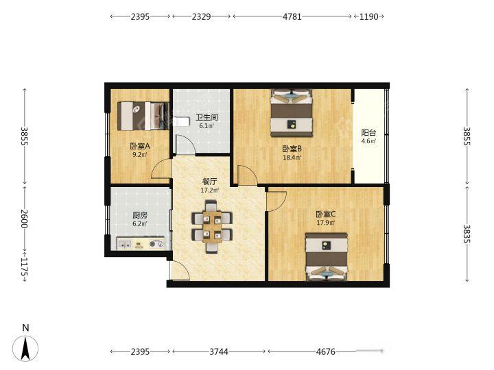93㎡ / 3室1厅1卫